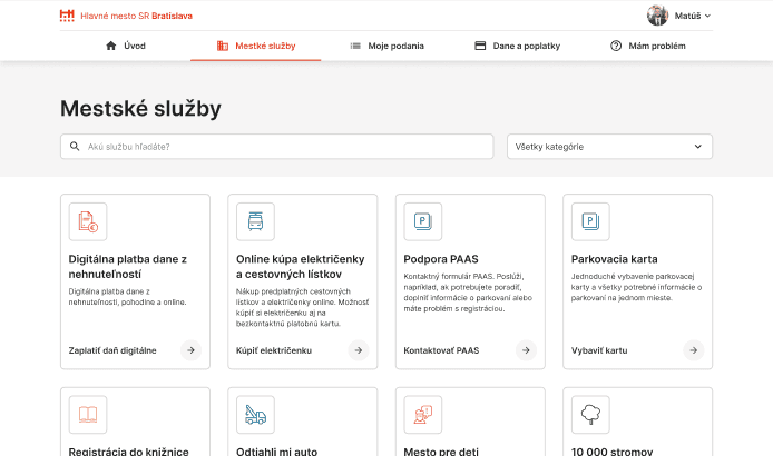 Postupne máme za cieľ pridať do konta všetky služby, ktoré mesto obyvateľom a obyvateľkám poskytuje.